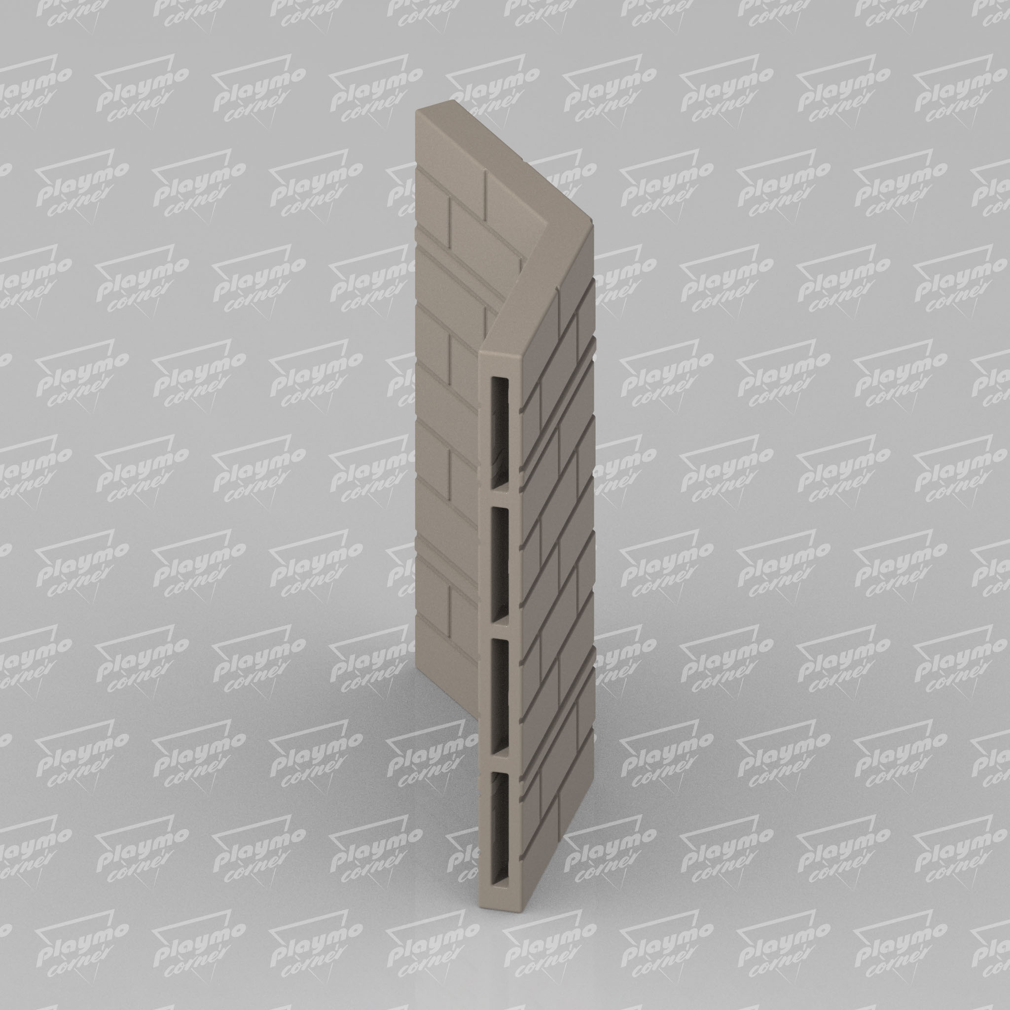 The XL version of our L octagon connector, designed for builders adding double-thickness walls to an octagonal Playmobil Steck tower. A double wall at a 135-degree corner requires two different connector sizes: the standard version sits on the inside of the corner, while this larger XL piece covers the outside, together they create a clean, gap-free double wall at the exact angle of an octagonal tower.